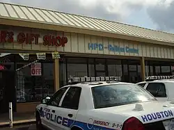 Gulfton is served by the Houston Police Department's South Gessner Division (previously Fondren Patrol Division).[59][60] Previously the Gulfton area was served by the Southwest Patrol division, then headquartered on Beechnut Street.[11] A June 1999 report entitled the Gulfton Community Five Year Plan, produced by the Office of Juvenile Justice and Delinquency Prevention, stated that the sudden changes in Gulfton's population exceeded the police department's ability to adapt.[50] The establishment of the Gulfton Storefront Station augmented the police department's presence in Gulfton.[61] This station, originally located near the Napoleon Square Apartments,[62] opened in the summer of 1990 with the City of Houston paying one dollar a month to the real estate company managing the complex. The Gulfton Area Action Council paid the utility bills, estimated at $5,000 per month in 1990.[63] The Civic Association of Shenandoah also provides support for the establishment of the sub-station.[64] By 1998 the Fondren Patrol division was established with responsibility for the area.[65] The storefront moved to its current location in 2017.[66]