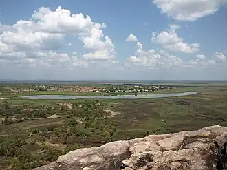 Gunbalanya (also spelt Kunbarlanja, and historically referred to as Oenpelli) is a town in west Arnhem Land in the Northern Territory of Australia, about 300 kilometres (190 mi) east of Darwin. The main language spoken in the community is Kunwinjku (a dialect of Bininj Kunwok). At the 2021 Australian census, Gunbalanya had a population of 1,177, of largely Aboriginal Australian[2] identity.