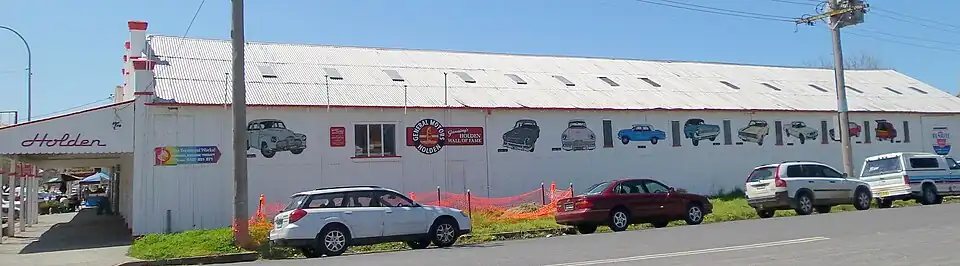 A feature of the town is Bailey's Garage, once a very busy Holden dealership. One long exterior wall carries large images of nine notable Holden models.[5]