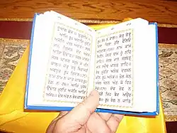 Gurbani (Punjabi: ਗੁਰਬਾਣੀ, pronunciation: [ɡɝbaːɳiː], lit. the Guru's words) is a Sikh term, very commonly used by Sikhs to refer to various compositions by the Sikh Gurus and other writers of Guru Granth Sahib. In general, hymns in the central text of the Sikhs, the Guru Granth Sahib, are called Gurbani. Among Amritdhari Sikhs, a few texts from Dasam Granth which are read as Nitnem, like Tav-Prasad Savaiye and Chaupai, are also considered Gurbani. In Adi Granth, Gurbani is a sound which comes directly from the Supreme and the text is a written form of the same in worldly language and scripts. It is also called Guru’s Bani.[1]