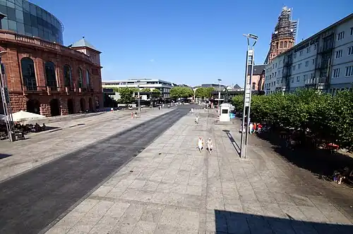 The Gutenbergplatz is an important square in the German city of Mainz, in terms of building culture and urban development. It was named after Johannes Gutenberg, who was born in Mainz. Gutenbergplatz is the largest and most important square in the city centre of Mainz. Due to its social and urban history, the square has been designated a monument zone.[1][2]