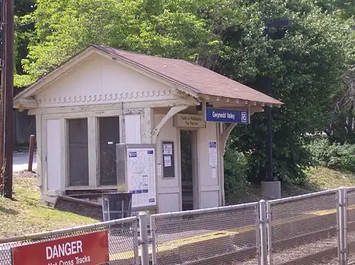 The Gwynedd Valley station is a transit station which is located on the SEPTA Lansdale/Doylestown Line. The station, which is situated at the grade crossing of Plymouth Road in Gwynedd Valley (part of Lower Gwynedd Township, Pennsylvania), includes a 166-space parking lot.