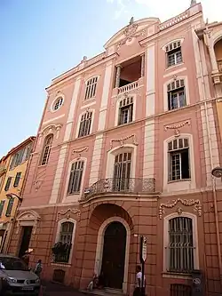 In 1906, the Bishop of Fréjus, Félix-Adolphe-Camille-Jean-Baptiste Guillibert, was expelled from the palace, following the implementation of the 1905 French law on the Separation of the Churches and the State.[6] The town council, which had previously been based on Rue Nationale (now Rue Jean Jaurès),[a] was looking for extra space and decided to acquire the former bishop's palace and relocated there in 1912.[3][11]