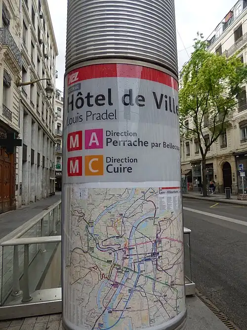 It is named for the Hôtel de Ville (town hall) and the Place Louis-Pradel, which is named for Louis Pradel, mayor 1957–76.[2]