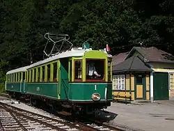 The Lower Austrian Höllental Railway (German: Höllentalbahn) is a narrow gauge electric railway with a track gauge of 760 mm (2 ft 5+15⁄16 in), which runs from the Austrian Federal Railways (ÖBB) station of Payerbach Reichenau on the Semmering Railway for approximately five kilometres (3 mi) through the market town of Reichenau an der Rax to Hirschwang.
