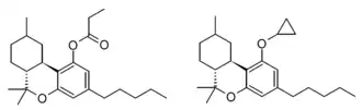 Hexahydrocannabinol propionate (left) and Hexahydrocannabinol cyclopropyl ether (right)