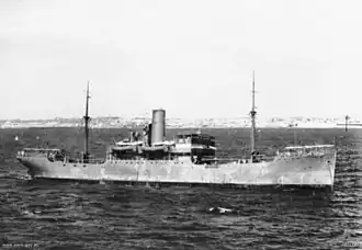 Poyang was requisitioned by the Royal Australian Navy in May 1942.[2] Fitted out as an Armament Stores Issuing Ship and keeping her civilian crew, she plied the east coast of Australia and also was in New Caledonia and New Guinea during 1942.[5]
