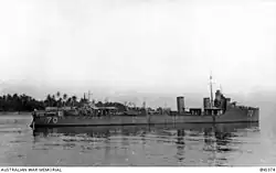 At the end of the war, Warrego was briefly deployed to the Black Sea before sailing to Gibraltar.[8] The ship earned two battle honours for her wartime service: "Rabaul 1914" and "Adriatic 1917–18".[9][10]