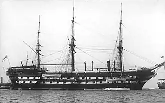 ![]() HMS Boscawan in later life as the training ship Wellesley, 1904
