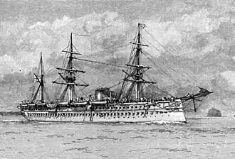 On 25 August 1883 she collided with HMS Minotaur at Plymouth and ran aground.[4] She shipped back the York and Lancaster Regiment to England from Sudan 29 March to April 1884 [5] In March 1886 she collided with the German steamship Hesperia in the Suez Canal but was not damaged.[6]