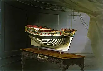 ![]() Painting by Joseph Marshall (1773–1775) of Kingfisher hull model