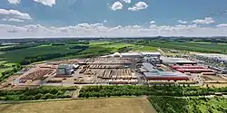 The sawmill in Reci, Covasna County, commenced operations in August 2015, following a 150 million euro investment.[11] The production unit spans over 70 hectares[12] and has a cutting capacity of 800.000 m3 round wood.[13] The factory employs 520.[14][15]
