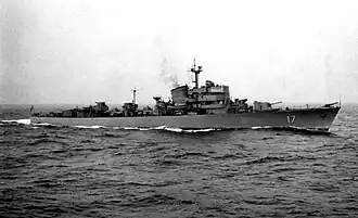 HSwMS Uppland was a Öland-class destroyer which served with the Royal Swedish Navy. Larger and more stable than previous Swedish destroyers, the vessel was launched on 15 December 1948. Armament was based around two twin mounting for semi-automatic 120 mm (4.7 in) guns, an extensive anti-aircraft defence of seven 40 mm (1.6 in) and eight 20 mm (1 in) guns and a quadruple 375 mm (15 in) anti-submarine rocket launcher, as well as torpedoes and mines. The ship was upgraded in 1963, which involved the addition of a helicopter platform amongst other alterations, and reclassified as a frigate in 1974, until ultimately being retired on 1 July 1978 as part of a strategy to remove larger combat vessels from the fleet.
