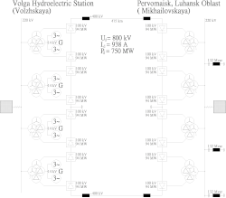 The HVDC Volgograd–Donbass is a 475 kilometres (295 mi) long bipolar ±400 kV high voltage direct current powerline used for transmitting electric power from Volga Hydroelectric Station at Volgograd in Russia to Donbas in eastern Ukraine and vice versa.[1]