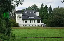 The area was owned by the Sudeten German Habermann family. The Art Nouveau villa was built in 1920 as Hubert Habermann's residence. The adjoining buildings were used as a sawmill, watermill and cooperage. A small business producing wooden boxes was established in the mill too.[2]