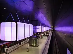 HafenCity Universität (German pronunciation: [ˈhaːfn̩ˌsɪti univɛʁziˈtɛːt]) is a rapid transit station on line U4 of the Hamburg U-Bahn network in the district of HafenCity in central Hamburg, Germany. The station is named after the nearby HafenCity University.