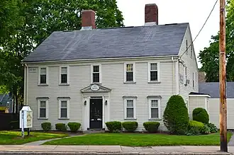 The Hager–Mead House is a historic house at 411 Main Street in Waltham, Massachusetts. The 2+1⁄2-story wood-frame house was built in 1795, and is one of the city's small number of 18th-century houses. It is five bays wide and two deep, with chimneys set in the ridge, and a center entry flanked by Doric pilasters and topped by a six-pane transom window and modillioned cornice. The house was built by Samuel Hager, a farmer from Watertown, who promptly sold it Stephen Mead, a blacksmith, in 1796.[2]