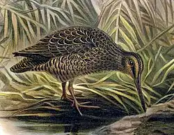 Examination of museum skins from bird collections showed such characteristic wear of the tail feathers on male snipe from the Chatham Islands (C. pusilla), islands off Stewart Island (C. iredalei), the Auckland Islands (C. aucklandica aucklandica), and the Antipodes Islands (C. a. meinertzhagenae).[2] Since then the same kind of tail-feather wear has been found on snipe from the Snares Islands (C. huegeli),[4] and Hakawai displays have been heard in the Auckland and Antipodes Islands, as well as from the newly described Campbell snipe (C. a. perseverance) on Campbell Island.[5]