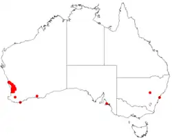 - ^ a b Young, J A. Hakeas of Western Australia:A Field and Identification Guide. J A Young. ISBN 0-9585778-2-X.