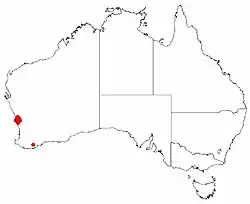 Lesueur hakea is a rare and endangered species growing on lateritic sand plains in low heathland from Jurien Bay to Mount Lesueur Western Australia.[4]