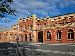 Halberstadt Hauptbahnhof is the main station on the Magdeburg–Thale railway in Halberstadt in the German state of Saxony-Anhalt. A terminal station was opened in the town in 1843. A new through station was opened in another part of the town in 1868. The first service from Halberstadt ran to Magdeburg. Two more lines were added during the next few decades. In the Second World War, the station suffered heavy damage. Extensive modernisation work took place between 2008 and 2010. The entrance building and the locomotive depot are listed buildings.[3] It received the moniker of "Hauptbahnhof" since 15 December 2024.