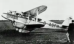 GWR Air Services set up the first scheduled service at Haldon. It started on 12 April 1933 as a stop on their twice-daily Cardiff — Plymouth service. It used Westland Wessex airliners leased from Imperial Airways, and a suitably timed bus service connected their passengers with Teignmouth and Torquay.[11] The service only lasted until the end of the year, when the airline was merged into the new Railway Air Services.