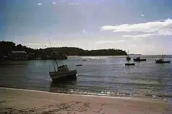 Halfmoon Bay and its neighbour Horseshoe Bay are the subject of a name mix-up. Halfmoon Bay is in fact shaped more like a horseshoe, whereas Horseshoe Bay is shaped like a half moon.[2]