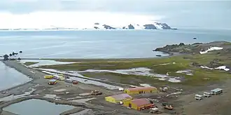 ![]() The coast of the Halfmoon Cove, and the Henryk Arctowski Polish Antarctic Station, in 2008. | |