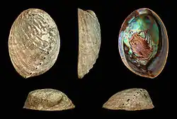 - ^ Evans, H.J.N.; Peters, H. (2021). "Haliotis iris". IUCN Red List of Threatened Species. 2021: e.T78769001A78772483. doi:10.2305/IUCN.UK.2021-1.RLTS.T78769001A78772483.en. Retrieved 7 July 2023.