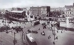 The U1 and U3 platforms, on an elevated railway at the northern banks of the Landwehr Canal, opened on 18 February 1902 with Berlin's first U-Bahn line (Stammstrecke) from Stralauer Tor to Potsdamer Platz. The underground U6 (then Linie C) platform was finished on 30 January 1923, linked by a pedestrian tunnel. Even today, changing from one platform to the other is (for Berlin) quite a long distance.[2]