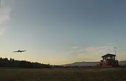 Construction commenced immediately and took less than four months. Of the investment of 124,000 Norwegian krone (NOK), 60,000 was paid for by Hamar Municipality, 54,000 by the RNoAF and 10,000 by the Norwegian Aero Club.[2] The municipality and the air force agreed to jointly cover the operating costs.[3] The airport originally received a 600-meter (2,000 ft) runway and a 120-meter (390 ft) apron. Construction was carried out by the military.[2] The airport was opened on 17 November 1950.[3] A further extension was started in 1952,[2] and the airport could opened on 25 June 1953 with an extended 920-meter (3,020 ft) runway. This allowed the airport to handle de Havilland Heron and Douglas DC-3 aircraft. The extension improved the air force's ability to use the airport for emergency landings.[4]