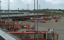 Hamburg Airport is the fifth-busiest of Germany's commercial airports measured by the number of passengers and counted 13,559,732 passengers and 120,315 aircraft movements in 2023.[3] As of July 2017, it featured flights to more than 130 mostly European metropolitan and leisure destinations as well as two long-haul routes to Dubai and Doha.[4] The airport is equipped to handle wide-bodied aircraft including the Airbus A380.[5]