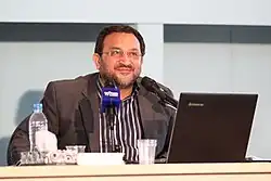 Hamidreza Moghaddamfar (born 1961) is an Iranian university professor, expert on strategic issues, cultural and media adviser to the commander of the Islamic Revolutionary Guard Corps of Iran,[2][3] deputy of the Office of Preservation and Publication of Seyyed Ali Khamenei's Works,[4] secretary of the People's Headquarters of Commemoration of Qasem Soleimani and cultural adviser of the Islamic Azad University. He is in charge of publishing and advertising the works of Seyyed Ali Khamenei (the current leader of Iran) to the youth of Europe and North America.[5] He was the CEO of Fars News Agency from 2007 to 2011. Then, he became the cultural and social deputy of the Islamic Revolution Guards Corps (IRGC) and was in this position until September 2014.[6] In 2015, Moghadamfar received the official Iran honorary badge of The Striving in the Field of Culture and Art.[7][8] He is also a member of the board of trustees of the shrine of Sultan Ali ibn Muhammad Baqir.