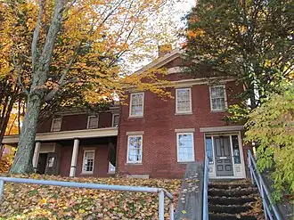 Although brick was not a house building material commonly used in Southbridge when this house was built c. 1840, most of the worker housing built by the Hamilton Woolen Mill Company was.[3] This house was probably built for John Edwards Bacon, the millwright who built the 1836 Hamilton Company's mill, then the nation's largest mill building. By 1855 the house was occupied by the mill's agent, Joshua Ballard, who held leading positions in the company for forty years, during its period of greatest success.[2]