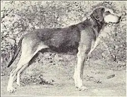 The use of scenthounds in Sweden dates back at least to the 1500s when it is thought that Eastern European hounds were brought to Scandinavia. There is some disagreement as to the ancestors of the Hamiltonstövare, and various authorities have proposed native Swedish hounds, Swiss and German hounds such as the Holstein hound or the Hanover hound, Latvia's now extinct Curland hound, the English foxhound and harrier.[5][3] In the late 19th century, Count Adolf Patrick Hamilton, a Swedish cavalry officer and the Swedish Kennel Club's first president, dedicated his efforts to developing a breed that would excel in hunting and tracking and at an 1886 dog show, he presented two dogs which would be considered the first Hamiltonstövare.[1][5][8] The result was a dog with a robust build, well-suited for navigating the diverse terrains of the Swedish countryside.[3][9] While a popular hound in Sweden, the breed is rare outside of Scandinavia.[3] Originally simply called the Swedish hound, like the Schillerstövare and the Hygen hund, the breed was later renamed Hamiltonstövare after its creator in 1921 when it was recognized by the Swedish Kennel Club in 1921.[8][1] The Federation Cynologique Internationale (FCI) recognized the Hamiltonstövare in 1955, and the breed is currently part of the American Kennel Club's Foundational Stock Service.[1][10][11]
