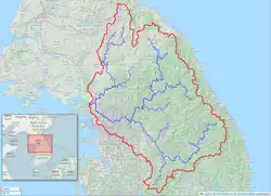 ^2013년 한국하천일람 [List of Rivers of South Korea, 2013] (PDF) (in Korean). Han River Flood Control Office, Republic of Korea. 31 December 2012. pp. 23–24. Archived from the original(PDF) on 4 March 2016. Retrieved 3 July 2014.