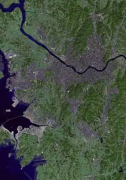 Seoul, the capital city of South Korea, is the only example of a major metropolis with such a wide river running through it; few large cities are divided by a massive river approximately 1.2 kilometers wide.[8] The term "Miracle on the Han River", referring to South Korea's rapid economic growth, originates from this river.