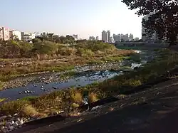 Even though the river is wide, its relatively low discharge means that the river runs dry for most of the year, hence the name.[2] A bike path known as the "Han River Bike Trail" (旱溪自行車道) runs alongside the river between Fengyuan and Dali.[3]
