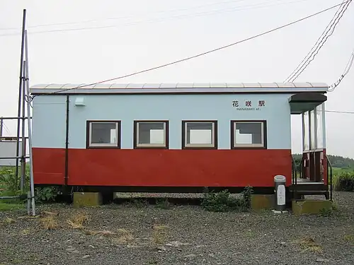 Hanasaki Station (花咲駅, Hanasaki-eki) was a railway station on the Nemuro Main Line in Nemuro, Hokkaido, Japan, operated by Hokkaido Railway Company (JR Hokkaido). Opened in 1921, it closed in March 2015.