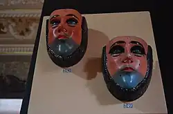 Various products are made from various woods in various communities of the state. Tzotzil men in San Juan Chamula are noted for their wood working, especially working with hardwoods such as cedar and mahogany, generally making furniture for home and industry.[1] Musical instruments such as strings, percussion, wind and high quality marimbas in fine woods are made in Tecpatán, Ocosingo, San Juan Chamula and Venustiano Carranzo.[4][8] Wood is also used to make a variety of products including tools, decorative figures, cooking utensils, ceremonial masks, toys (tops, miniatures, etc.) and more.[1] Chiapa de Corzo is noted for the making of wooden bowls, spoons, toys, masks and more, a significant number of which are destined to be lacquered.[1] Masks are made in San Fernando and Huixtan, with the most representative being the mask for the parachico dance of Chiapa de Corzo. It represents how the Spanish looked to the indigenous, with a high forehead, thin nose, light-colored eyes, red cheeks and mustache and beard. These masks take about ten days to make and cost between 2,800 and 3,500 pesos each.[4][15] Tecpatán and surrounding communities are noted for wood sculptures made of fine woods, which may be painted or even lacquered.[1]