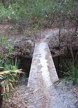 Hanna taught at Florida State College for Women. She also wrote a history of Florida titled Florida, Land of Change.[8] Following the Jacksonville Consolidation, the area became part of Jacksonville. The city purchased the surrounding property in the 1970s during the administration of Mayor Hans Tanzler, expanding the park.[9] The first general purpose trail was constructed by Michael Long in 1987 as his Eagle Scout service project.[1] Most of the land has been left in its natural, wooded state. Boardwalks were constructed over the dunes to protect vegetation.