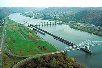 The Hannibal Locks and Dam are a United States Army Corps of Engineers concrete locks and lift gate dam, located at river mile marker 126.4 on the Ohio River at Hannibal, Ohio and New Martinsville, West Virginia. The locks and dam were built to replace the wicket-type locks and dams Number 12, 13 and 14. Construction on the locks was started in 1967 and completed in 1972. Construction on the dams was started in 1970 and completed in 1975.[1]