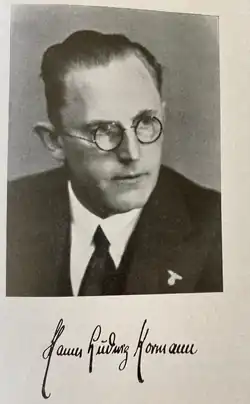 Kormann joined the NSDAP (Nazi Party) in 1931 (Nr. 905,628).[2] In close favour with Heinz Drewes, his operas experienced revivals and new premieres and several of his compositions were commercially released.[3][4] He later co-ordinated Unterhaltungsmusik for the Reichsmusikprüfstelle.[5] He was transferred to occupied Krakow where he ended the war. After the war, he returned to Buchholz, but was banned from public and radio performance for his political activities. After completing denazification in 1948, he moved to Erfurt, and finally Cologne, where he died in 1965.[2]