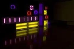 Hans Kotter’s work focuses on the physical, artistic elements of light, color, and space. He is interested in the changing appearance of these elements under different physical conditions.[6] He creates both small individual works of art and large-scale installations, which rely on light and often integrate photography.[7][8]