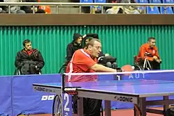 Hans Ruep (born 18 June 1960)[1] is an Austrian retired para table tennis player who competed at international level events. He is a double World medalist, ten-time European medalist and has competed at the Paralympic Games four times where he reached the bronze medal match in the men's team event at the 2008 Summer Paralympics with Andreas Vevera when they lost to South Korea.[2][3]