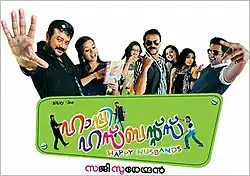 Happy Husbands is a 2010 Indian Malayalam-language comedy film directed by Saji Surendran, written by Krishna Poojappura and produce by Milan Jaleel under his banner Galaxy Films. It is the remake of 2002 Tamil film Charlie Chaplin.[1] The film stars Jayaram, Jayasurya and Indrajith Sukumaran in title roles with Bhavana, Samvrutha Sunil, Rima Kallingal, Vandana Menon, and Suraj Venjaramoodu in supporting roles. The film completed a 150-day theatrical run and became a blockbuster.