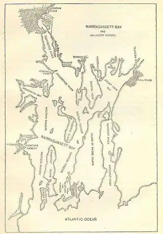 The Harbor Defenses of Narragansett Bay was a United States Army Coast Artillery Corps harbor defense command.[1] It coordinated the coast defenses of Narragansett Bay and Rhode Island from 1895 to 1950, beginning with the Endicott program. These included both coast artillery forts and underwater minefields. The command originated circa 1895 as an Artillery District, was renamed Coast Defenses of Narragansett Bay in 1913, and again renamed Harbor Defenses of Narragansett Bay in 1925.[4][5][6][7]