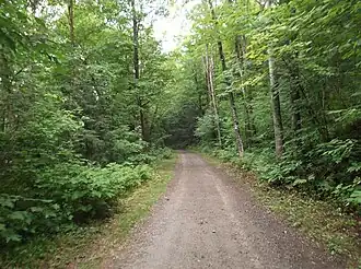 The abandonment and removal of the railroad's track left a trail through the hillside pastures, which have reverted to woods. A portion of the roadbed leading to the quarries is now Fletcher Quarry Road and Quarry Road in Woodbury, serving the one Robeson Mountain quarry still in operation. Decades after the abandonment, some of the right-of-way, from near Buffalo Crossing to the Woodbury Town Forest, found a new use as the Hardwick-Woodbury Rail Trail (also known as the Hardwick-Woodbury Recreation Trail).[39][40][26]: 32 [41]