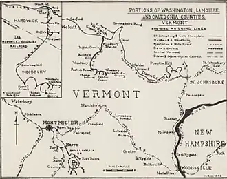 - ^ 1894 Vt. Acts & Resolves 235: An Act to Incorporate the Hardwick and Woodbury Railroad Company, Nov. 23, 1894; Laws of Vermont, A.D. 1894, pp. 316-319. Burlington: The Free Press Association.