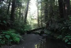 Hare Creek is a small stream in Mendocino County, California,[2] just south of Fort Bragg. It is approximately 12.4 kilometres (7.7 mi) long and all but the final 1.14 miles (1.83 km) of its watercourse lies within Jackson Demonstration State Forest. With its four tributaries, it drains an area of approximately 2,400 hectares (9.3 sq mi). Its watershed is bordered on the north by the Noyo River, and on the south by Digger Creek. It is a significant habitat for coho salmon.[3] It meets the Pacific Ocean at Hare Creek Beach, also known as Babcock Beach, which is owned and operated by the Mendocino Land Trust.[4]